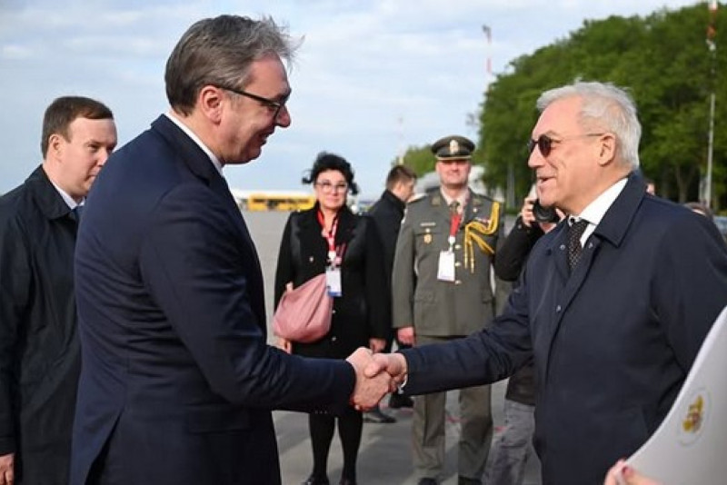 President Aleksandar Vučić flew to Moscow around 11 a.m. to attend the Victory Day celebration on Red Square. The plane temporarily landed in Baku because it did not have permission to fly due to combat operations. Once he got the go-ahead, the flight continued.