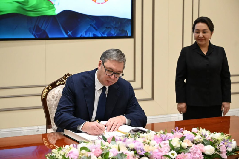 The President of Serbia, Aleksandar Vučić, together with the Serbian delegation, visited the Center for Islamic Civilization in Tashkent today.