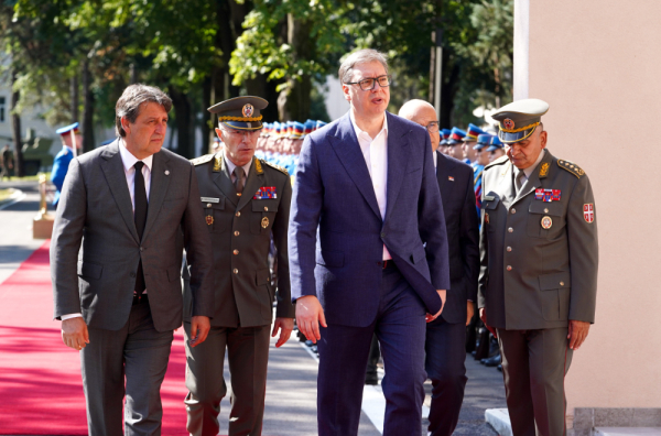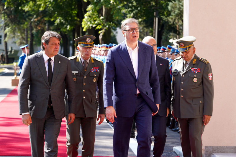 Vučić was welcomed, together with the Minister of Defense Bratislav Gašić and the Chief of the General Staff of the Serbian Army, General Milan Mojsilović, with the Guard's honor platoon and the anthem of the Republic of Serbia.