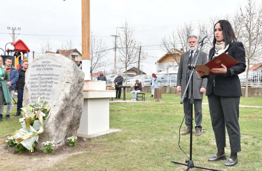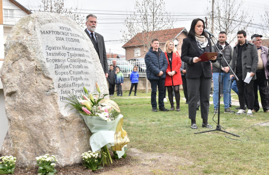 "At the initiative of the Government of the Republic of Serbia and the Office for Kosovo and Metohija, today we are unveiling a memorial plaque in memory of our fellow citizens who died in the March pogrom. At the initiative of the President of Serbia, Aleksandar Vučić, today we nurture a culture of remembrance and remember all our victims with due care and reverence. The goal of uncovering this plaque is to foster a culture of remembrance of the heaviest day of Serbian suffering in Kosovo and Metohija. A symbol of reminder of the torn Serbian lives. The names of the martyrs are carved into this stone and bear witness to our martyrs. This stone from Šar mountains is a symbol of the strength, strength and survival of the Serbian people in these areas. It is a symbol of the strength of our people to endure the calvary it is going through, but also a symbol of unpunished crime for 20 years," she said.