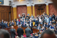 While she was speaking, the members of the coalition 'Serbia against violence' again physically moved towards the chairman, Stojan Radenović.