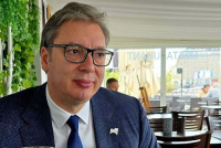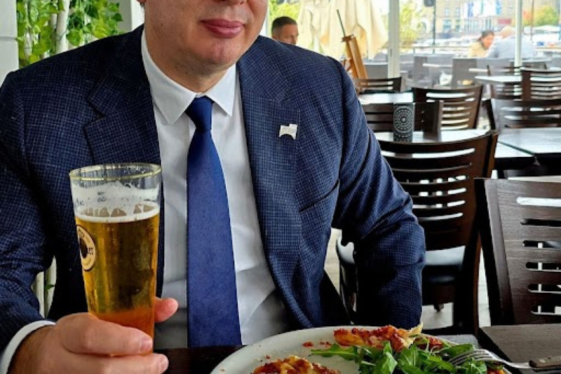 "Waiting for a bilateral meeting with Olaf Scholz. Pizza is decent, and the beer is top," wrote Vučić.