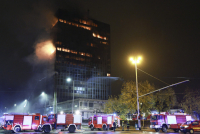 A large fire that engulfed the Vjesnik skyscraper in Zagreb last night continues to pose a danger to residents.