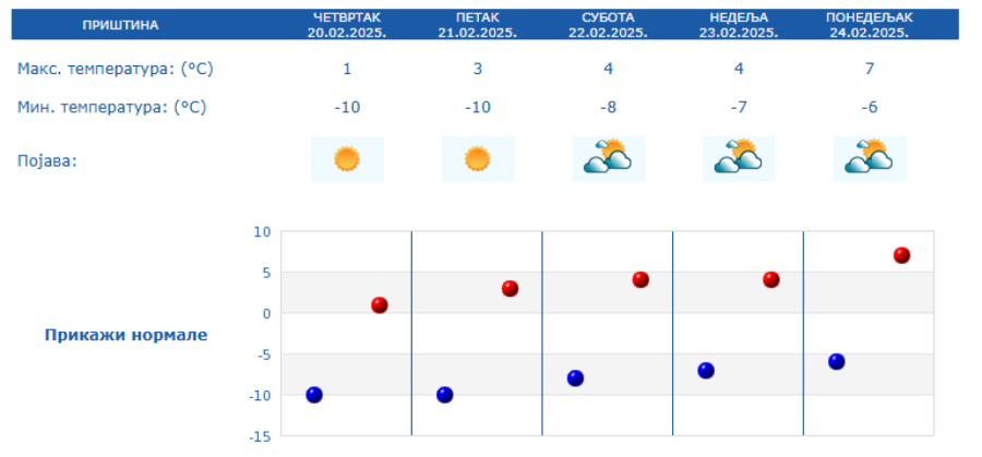 Weather in Priština for the next 5 days