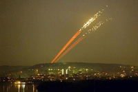 The first missiles fell on the barracks in Prokuplje at 19:53. This was followed by an attack on Priština, Kuršumlija, Batajnica, and Straževica. NATO began bombing from ships in the Adriatic, as well as from four air bases in Italy.