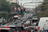All the approaches to the roundabout at Autokomanda are full of vehicles, including Vojvode Stepe Street, Kumodraška Street and Dr. Milutin Ivković Street.