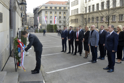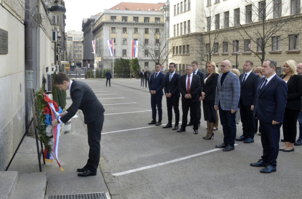 Apart from the Prime Minister, members and ministers Ivica Dačić, Goran Vesić, Jelena Begović, Mihailo Jovanović, Danica Grujičić, Jelena Tanasković, Tomislav Momirović, Miloš Vučević, Aleksandar Martinović, Slavica Đukić Dejanović, Tomislav Žigmanov and other members of the government attended the laying of wreaths.