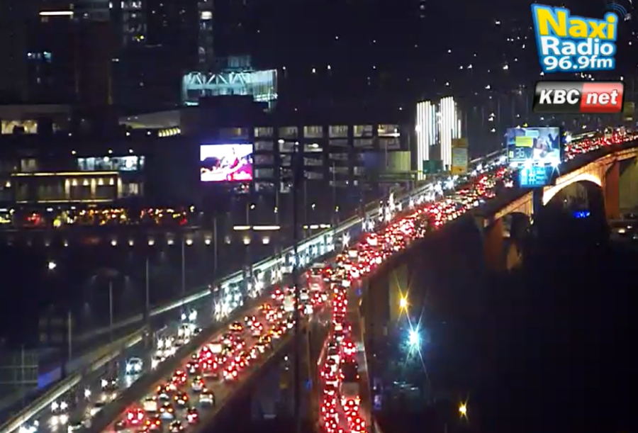 The biggest crowds are on the bridges.