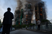 However, the fire quickly spread to the surrounding skyscrapers and is now almost impossible to control, with footage and live broadcasts showing a horrifying scene.