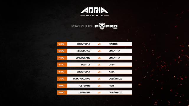 Prvi mečevi počinju u 12:00h, a celokupnu satnicu strima možete videti ispod. Mečeve pratite uživo na twitch.tv/adriamasters
