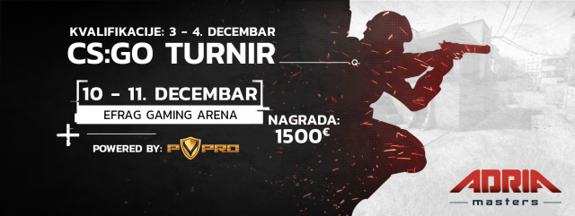 Adria Masters, mlada esports organizacija iz Beograda, uspešno je postavila temelj za svoj prvi CS:GO turnir odradivši žreb prijavljenih ekipa i objavivši grupe i satnice za online kvalifikacije – 3. i 4. decembar 2016. godine.