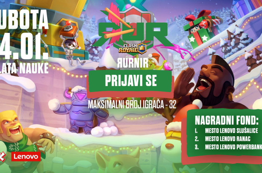 RUR Esports otvara 2026. godinu u velikom stilu, i to sa novim Clash Royale 1v1 turnirom powered by Lenovo & Trik! Kao što smo imali priliku da vidimo na ranijim izdanjima ove serije turnira, konkurencija je ogromna, a ako i vi želite da se oprobate protiv najboljih igrača iz Srbije, prijavite se!