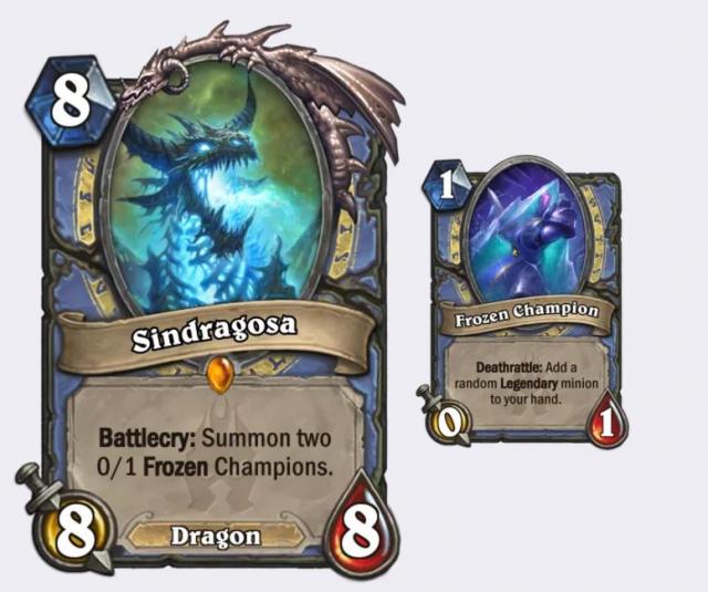 Sindragosa je 8 mana 8/8 koji nam samonuje 2 Frozen Championa, koji nam po smrti daju nasumične legendarne minione. Dakle jasno je da je u pitanju ultimativna value karta i sasvim sigurno, veoma jaka karta. Osam mana za 8/8 je već samo po sebi poprilično dobro za ovako moćan efekat, a tu je još i veliki bonus.