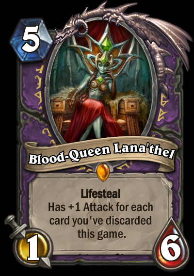 Blood-Queen Lana’thel nas već na prvu loptu pomalo podseća na Bolvar tip karte, a to odmah ne sluti na dobro, jer svi znamo koliko je loša karta Bolvar bio – spora, loš početni attack, ranjiva na hard removal i silence. Sve to isto važi i za Lana’thel.