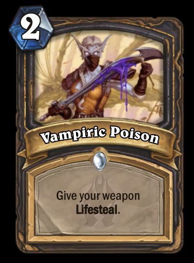 Dalje, ova karta košta 2 mane i mesta u špilu, a da praktično ne uradi ništa sama po sebi. Postoje svakako dosta praktičniji načini da se efikasnije lečite od ovoga. U Wild formatu, tu je i dalje dobri stari Antique Healbot, dok u Standardu formatu čak nam se čini da jednostavno bolji posao obavlja Violet Illusionist kao pseudo-heal. Vampiric Poison je definicija anti-tempa i anti-value karte, je je praktično “plati 2 mane i uradi skoro pa ništa”.