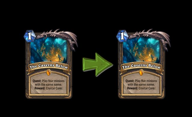 Najbitnija vest je da je nefovanje neslavnog Rogue Questa The Caverns Below stiglo u igru pa će vam za ispunjavanje njenog uslova sada trebati da odigrate 5 miniona sa istim imenom. Videćemo u narednim nedeljama kako će ovo slabljenje karte uticati na kvalitet Quest Rogue špila.