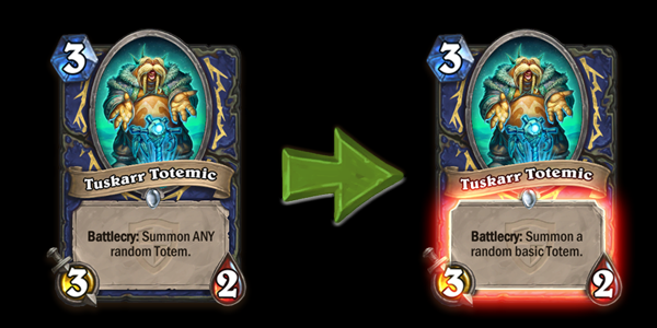 Tuskarr je pre nerfa mogao da samonuje 4 Hero Power totema, ali i 3 totema iz kolekcije - Golem Totem, Mana Tide Totem i Flametongue Totem. Nakon nerfa poslednja 3 totema više neće dolaziti iz Tuskarra.