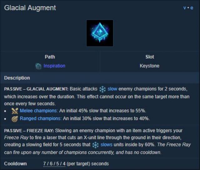 Prošlo je nekoliko meseci otkako je novi Rune sistem implementiran u League of Legends. Verovatno ste, igajući ranked i normal partije, imali prilike da isprobate većinu, ako ne i sve Keystone Rune, ali samo jedna nije uspela da se toliko proslavi u LoL meti. U pitanju je Glacial Augment, treći Keystone Inspiration grane. Iako nije u preteranoj upotrebi, Glacial Augment imao je svoj debi u profesionalnom LoL meču, a inspirisan tim nastupom, našao sam i još jednu ideju kako se ovaj Keystone može upotrebiti na zabavan i uspešan način.