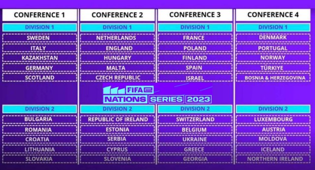 U regionu Evrope postoje četiri konferencije sa po deset timova raspoređenih u dve divizije, a Srbija se na osnovu rejtinga i dosadašnjih rezultata nalazi u drugoj konferenciji. Naši eOrlovi će igrati u Diviziji 2 protiv reprezentacija Republike Irske, Estonije, Kipra i Slovenije. U prvoj kvalifikacionoj nedelji, koja je na programu danas i sutra, Srbija će sa svakim rivalom iz grupe odigrati po dva meča. Dve najbolje plasirane reprezentacije prelaze u Diviziju 1 za narednu rundu koja je na programu 26. i 27. januara. Reprezentacije koje se budu nalazile na čelu svojih konferencija nakon poslednje faze (2. i 3. mart 2023. godine) obezbediće direktan plasman u Playoff, dok će ostale selekcije morati da igraju dodatne kvalifikacije protiv novih reprezentacija koje će ove sezone debitovati u okviru FIFA Global Series.