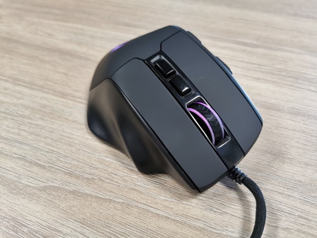 Kao što smo već primetili miš je solidno većih dimenzija tako da je najlakše ga koristiti kada je potpuno prekriven šakom, a sa gornje strane se nalaze još i tasteri za promenu DPI osetljivosti, naravno dva glavna dugmeta i točkić. Proizvođač takođe navodi da ovakav oblik prati ergonomiju šake i smanjuje zamor. Plastika od koje je izrađen je solidnog kvaliteta i prijatna je pod rukom, naravno imajući u vidu budžetski cenovni rang kome Aatrox pripada. Tu je i puno RGB osvetljenje pa miš i izgleda vrlo primamljivo. Sa donje strane se nalaze veliki klizači a na računar se povezuje preko USB porta s kojim je povezan končanim kablom koji je izuzetno prijatan na dodir i solidno lagan.