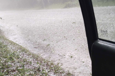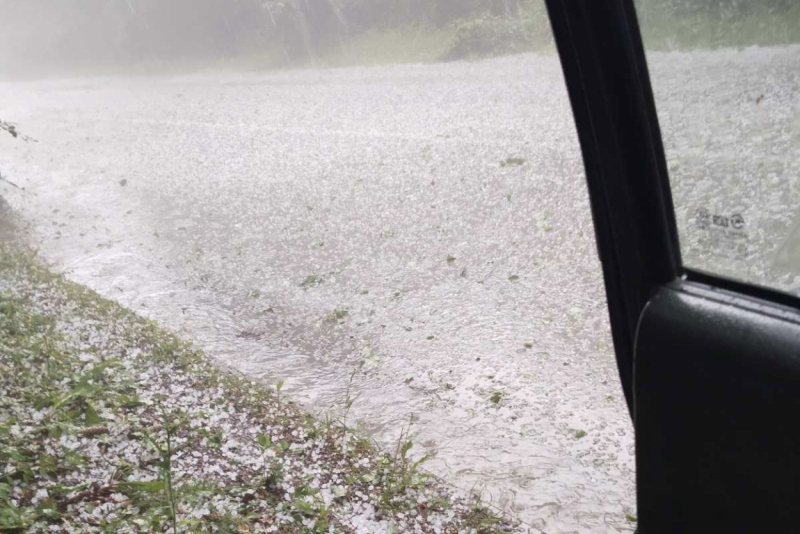 Kako se vidi na videu objavljenom na pomenutoj stranici, krupan grad pada, a boravak napolju otežava i grmljavina koja ga prati.