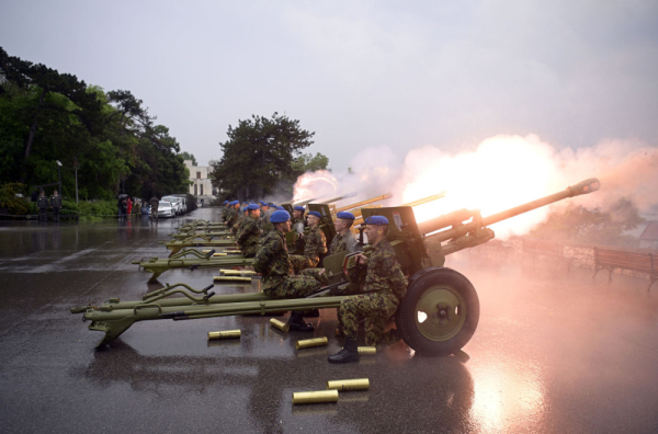 Nakon podizanja državne zastave i intoniranja himne, pročitana je Naredba predsednika Republike i vrhovnog komandanta Vojske Srbije Aleksandra Vučića, na osnovu koje su pripadnici Garde izvršili počasnu artiljerijsku paljbu ispaljivanjem deset plotuna iz šest artiljerijskih oruđa, saopštilo je Ministarstvo odbrane.
