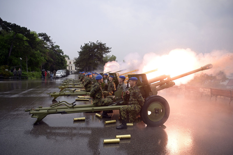 Povodom obeležavanja 9. maja – Dana pobede nad fašizmom pripadnici Garde Vojske Srbije izvršili su danas počasnu artiljerijsku paljbu sa Savske terase na Kalemegdanu.