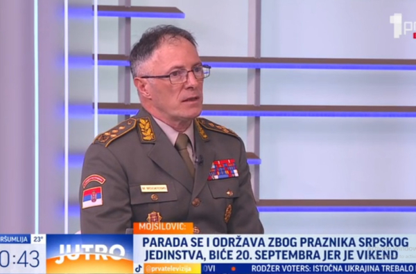 Načelnik generalštaba Vojske Srbije Milan Mojsilović bio je gost na TV Prva, gde je govorio o predstojećoj vojnoj paradi koja će se održati 20. septembra u Beogradu.