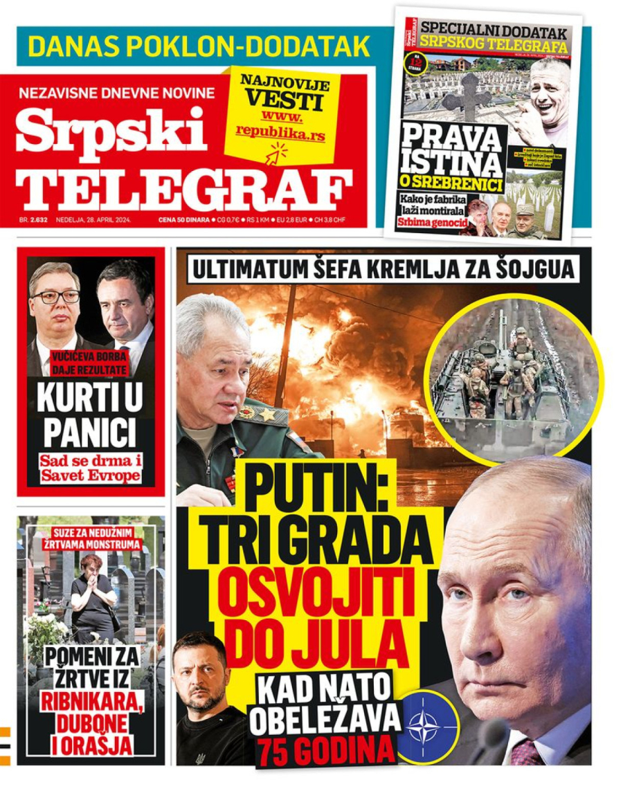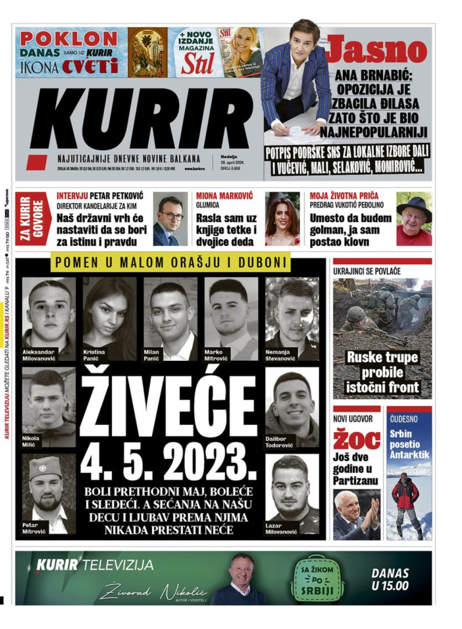 Dnevne novine u Srbiji za nedelju, 28. april 2024. godine, na naslovnim stranama najavljuju brojne aktuelne društveno-političke teme i donose ekskluzivne priče.