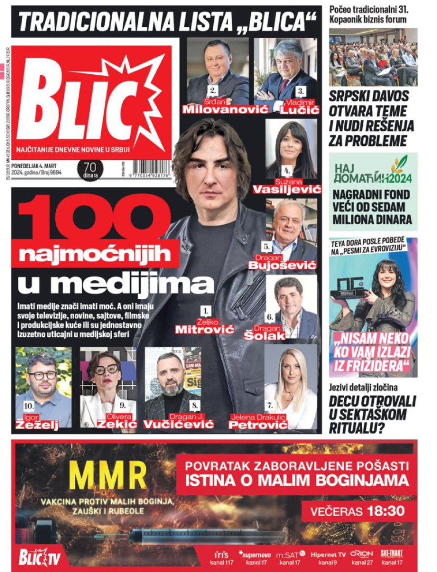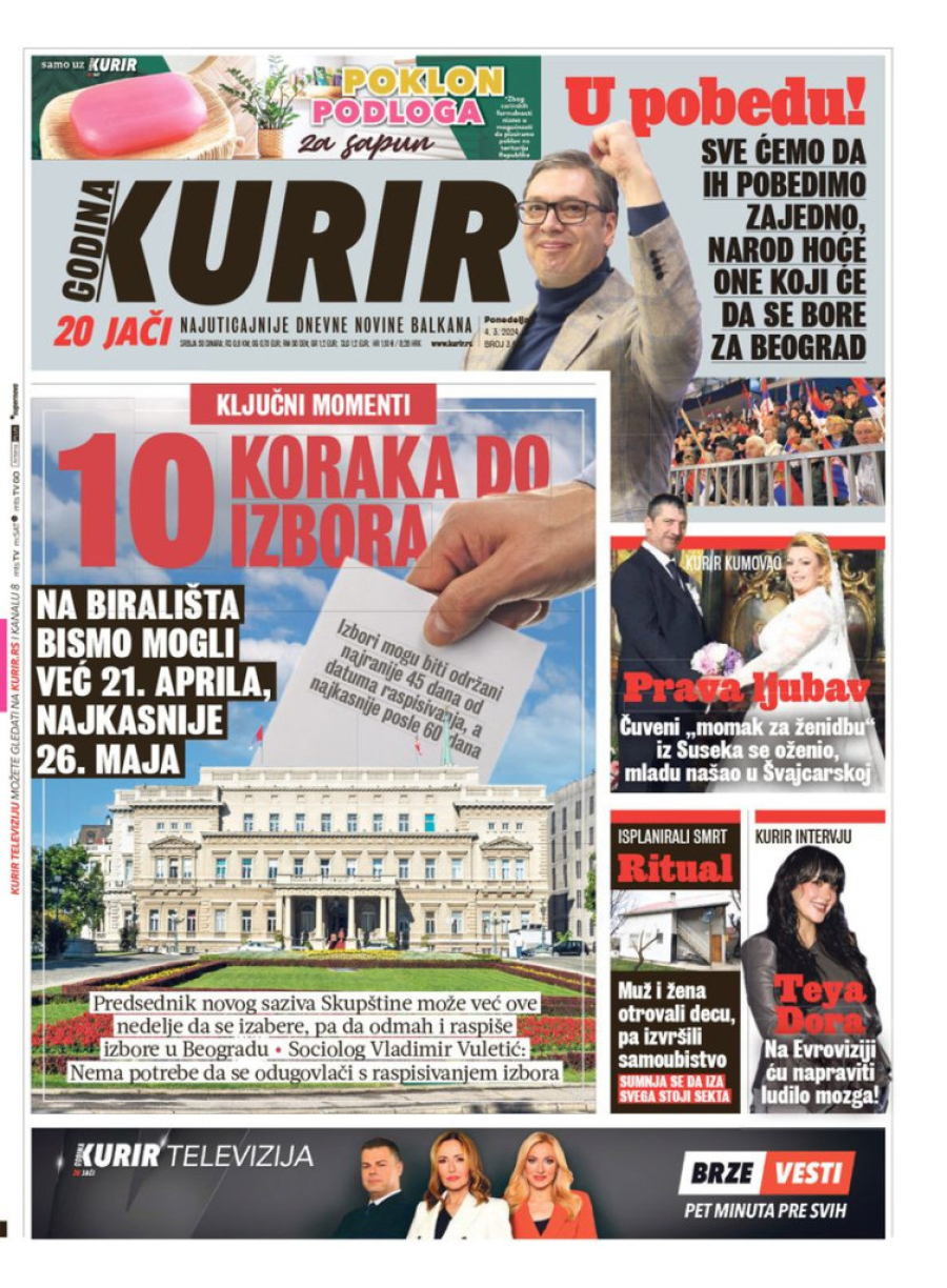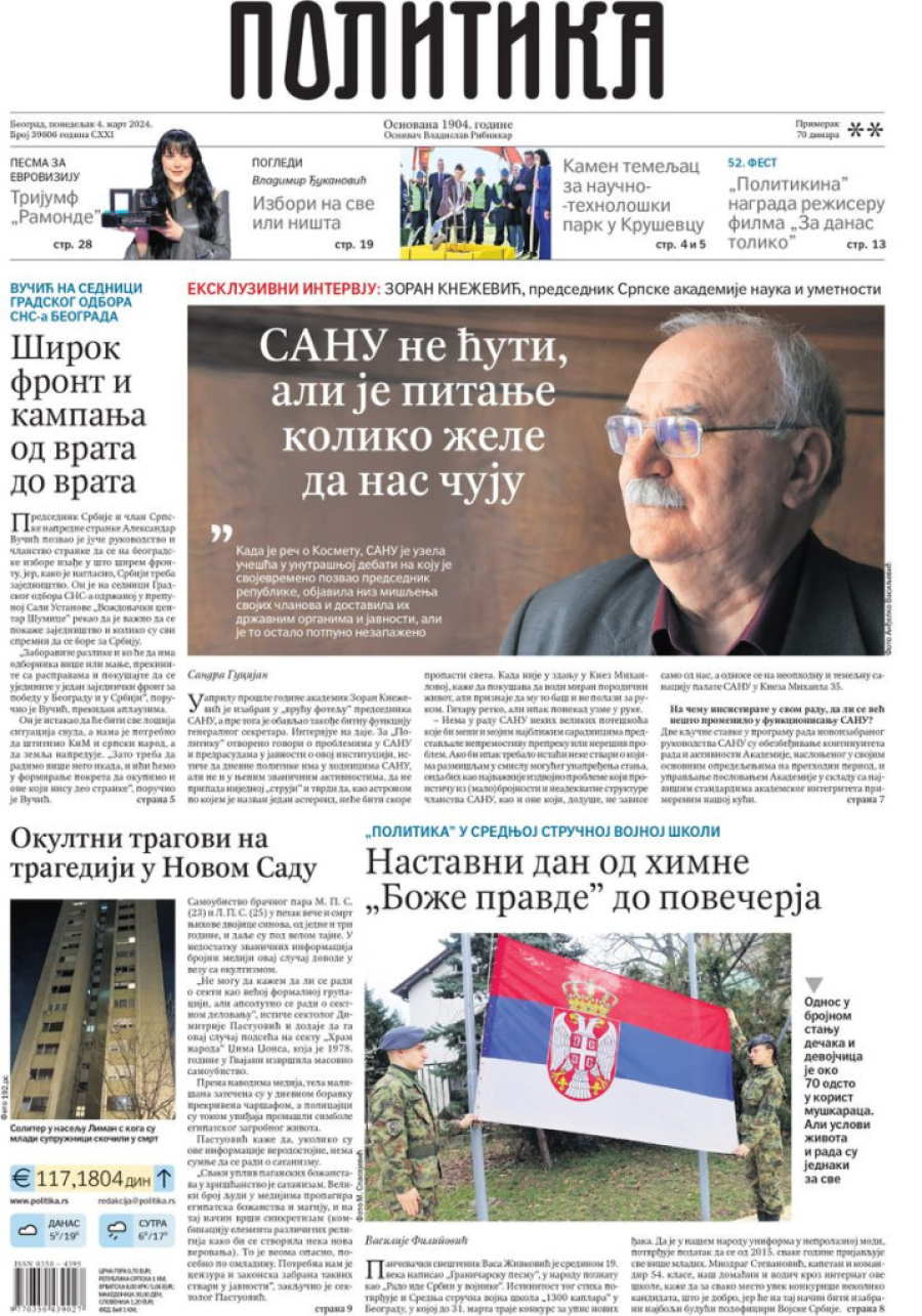 Dnevne novine u Srbiji za ponedeljak, 4. mart 2024. godine na naslovnim stranama donose brojne aktuelne društveno-političke teme.