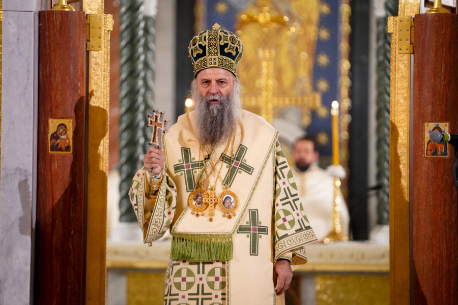 Patrijarh srpski Porfirije, sa arhijeremija SPC, čestitao je Božić vernicima i poručio u poslanici da je to praznik mira kada treba da prevaziđemo podele i pružimo ruku jedni drugima.