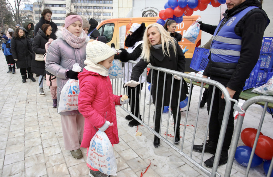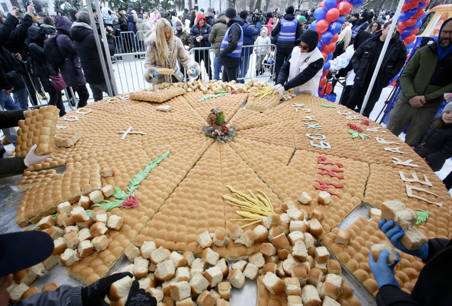 Pre lomljenja česnice, sveštenstvo Hrama Svetog Save osveštalo je česnicu. Prisustnima ispred Hrama Svetog Save Unija pekara Srbije podelila je i 4.000 krstića i više od 2.000 hiljade paketića, kao i druge poklone.