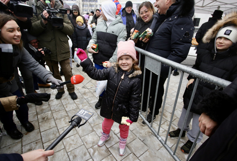 Na platou ispred Hrama Svetog Save na Vračaru u Beogradu tradicionalno je organizovano lomljenje božićne česnice koja je i ove godine imala 33 zlatna dukata u čast godina Isusa Hrista.