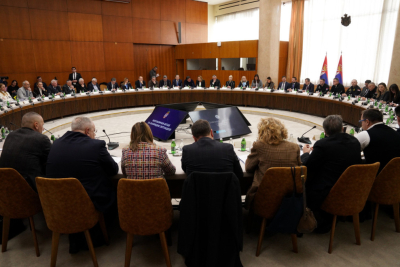 Sednica Republičkog štaba za vanredne situacije na kojoj je razmatrana aktuelna hidrološka i meteorološka situacija u zemlji održana je u Palati Srbija.