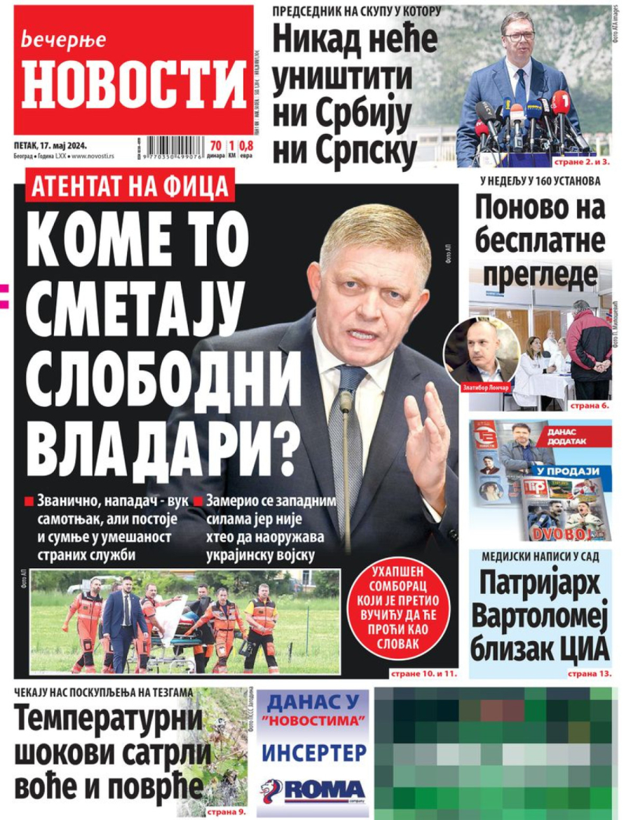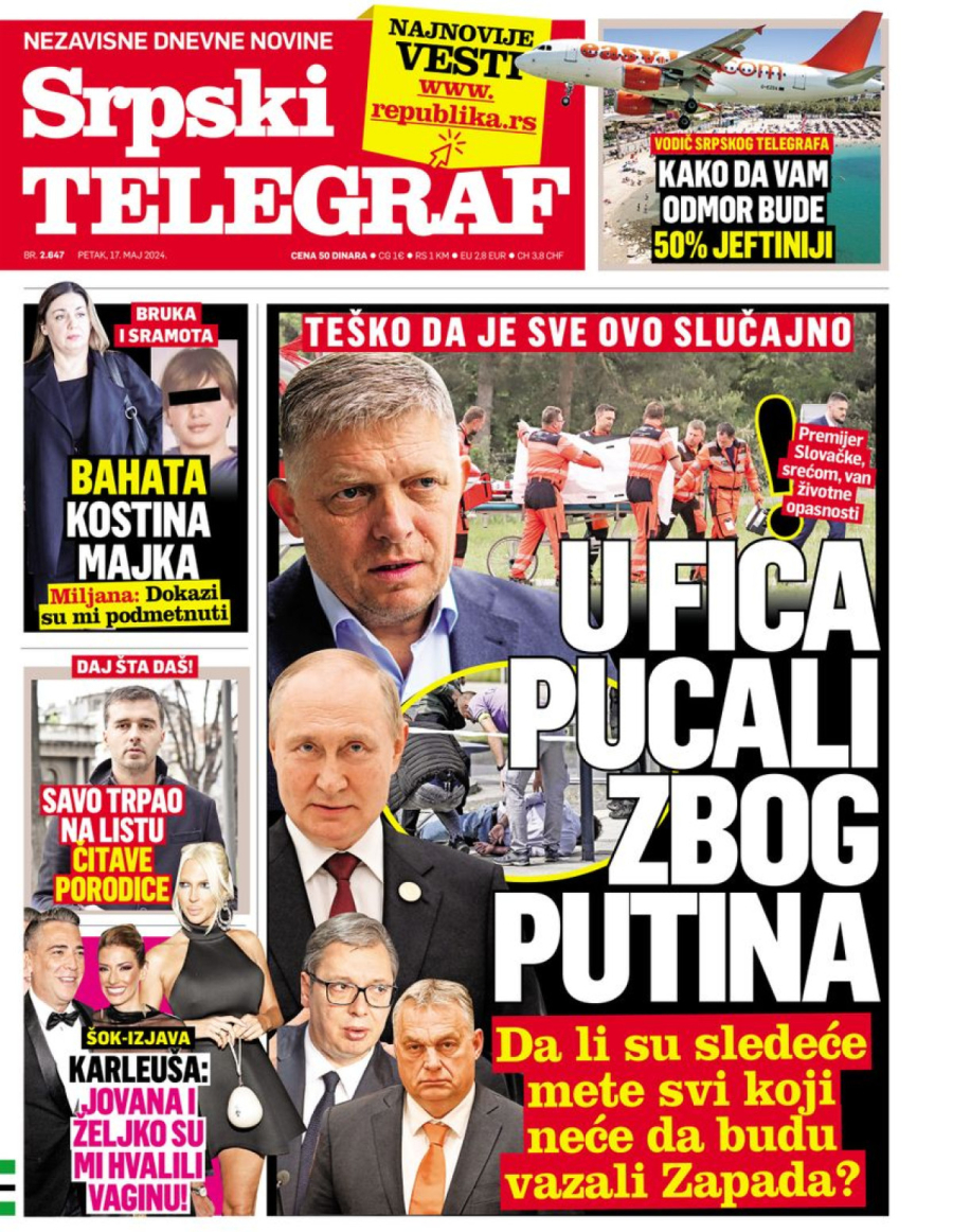 Dnevne novine u Srbiji za petak, 17. maj 2024. godine, na naslovnim stranama najavljuju brojne aktuelne društveno-političke teme i donose ekskluzivne priče.