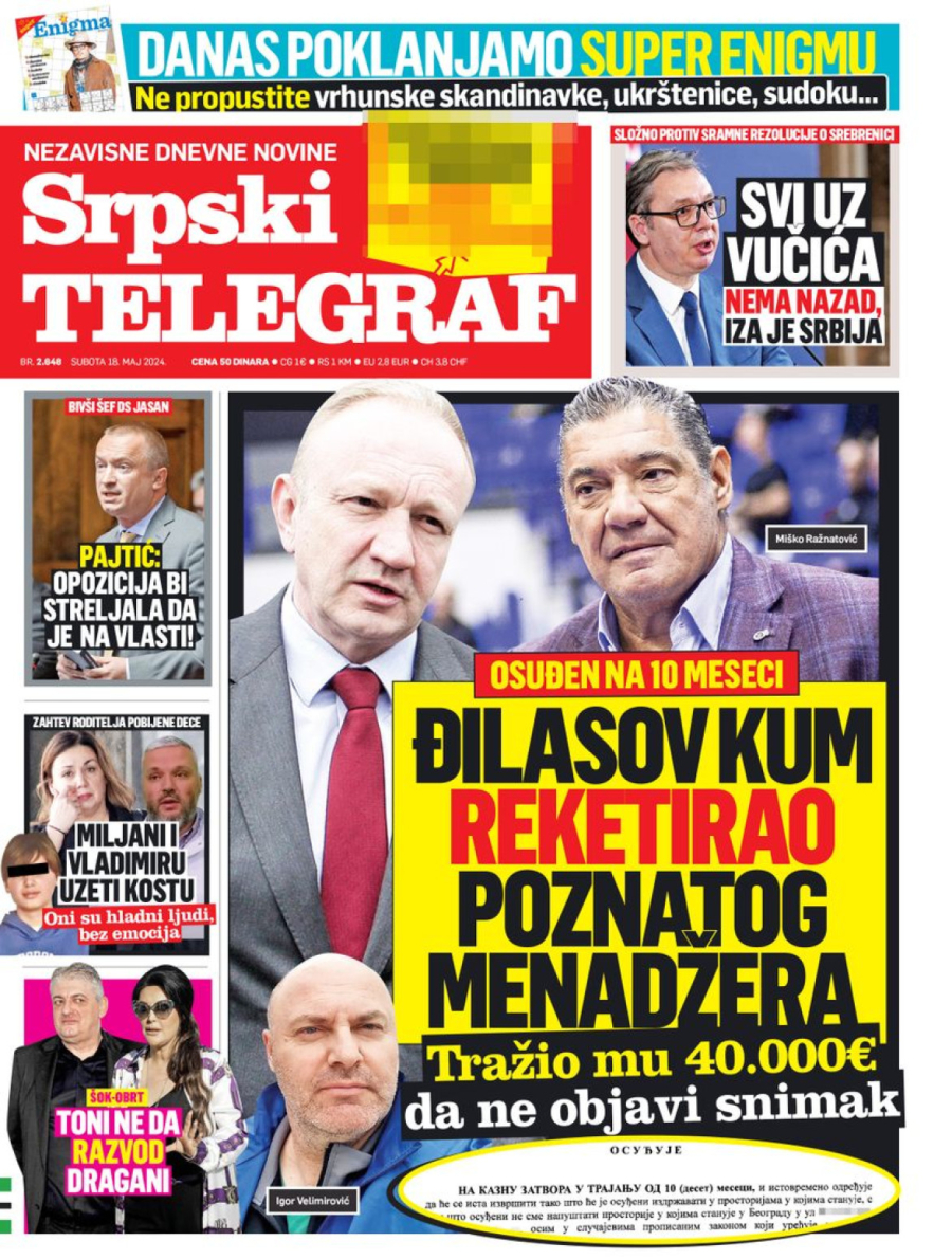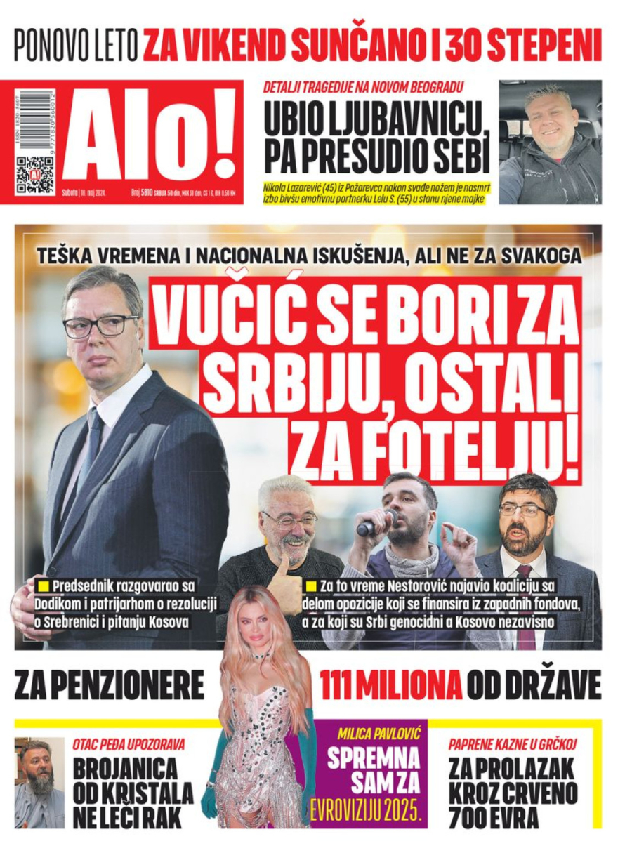 Dnevne novine u Srbiji za subotu, 18. maj 2024. godine, na naslovnim stranama najavljuju brojne aktuelne društveno-političke teme i donose ekskluzivne priče.