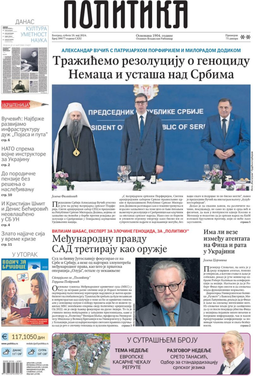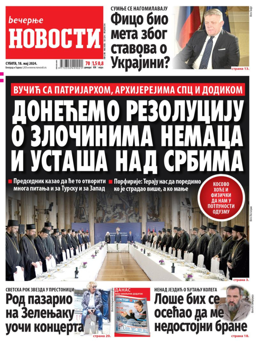 Novine: "Tražićemo rezoluciju o genocidu Nemaca i ustaša nad Srbima"; "Fico bio meta zbog stavova o Ukrajini?"