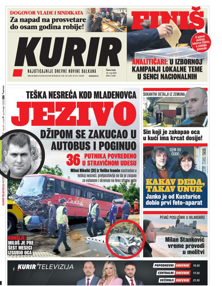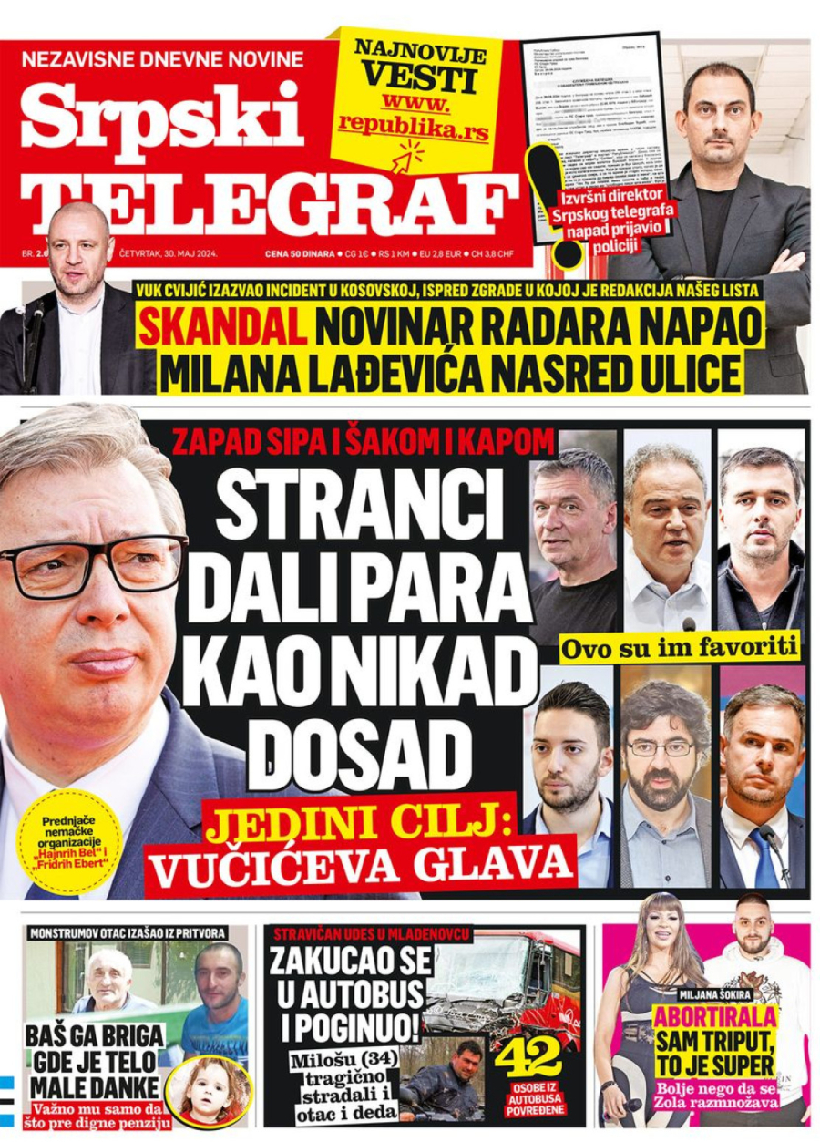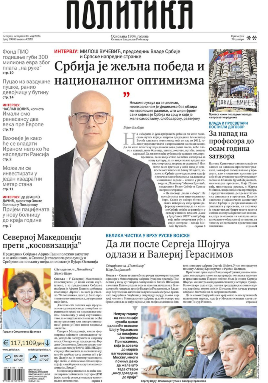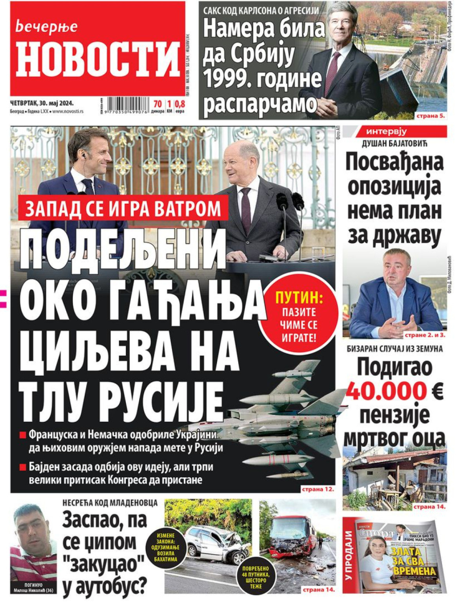 Dnevne novine u Srbiji za utorak, 30. maj 2024. godine, na naslovnim stranama najavljuju brojne aktuelne društveno-političke teme i donose ekskluzivne priče.