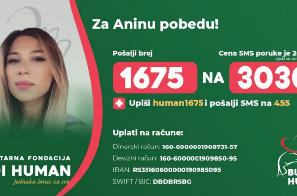 Humanitarna fondacija "Budi human" prikuplja novčana sredstva za pomoć Ani Spajić (1988), kojoj je 2023. dijagnostifikovan Non-Hočkin limfom.