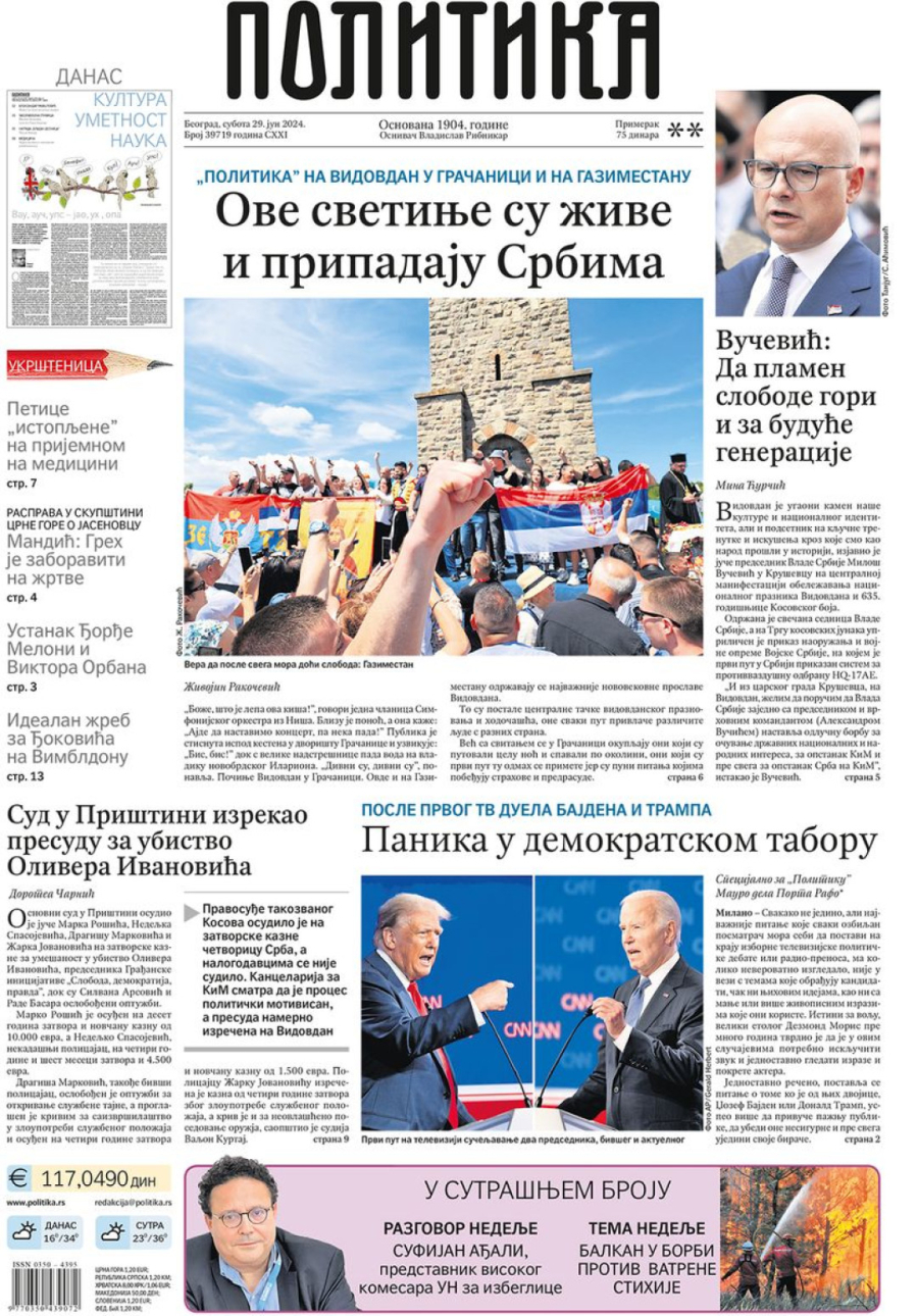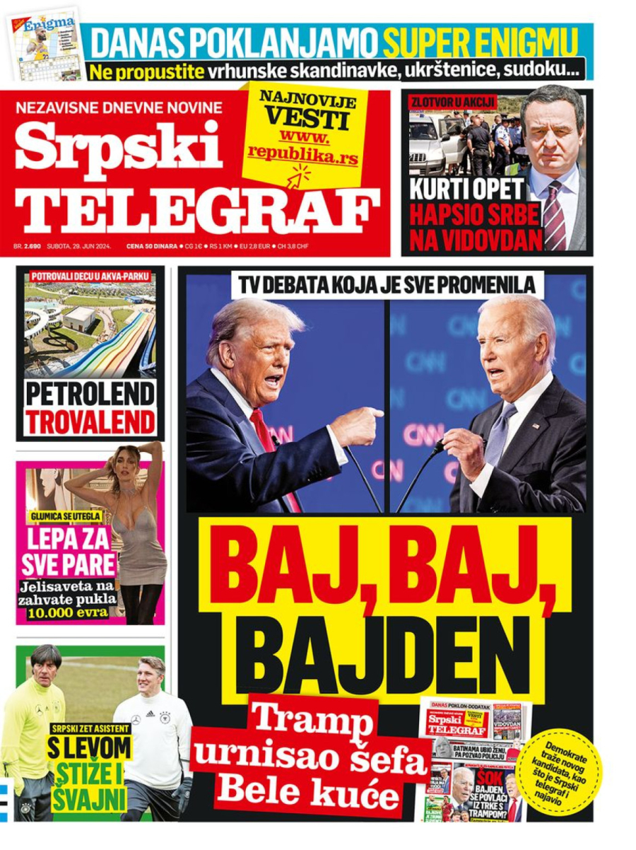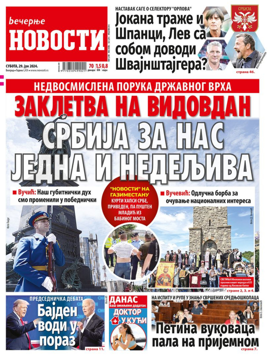 Dnevne novine u Srbiji za subotu, 29. jun 2024. godine, na naslovnim stranama najavljuju brojne aktuelne društveno-političke teme i donose ekskluzivne priče.