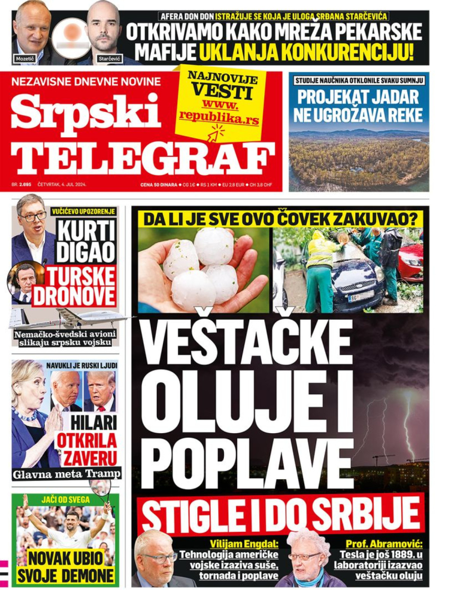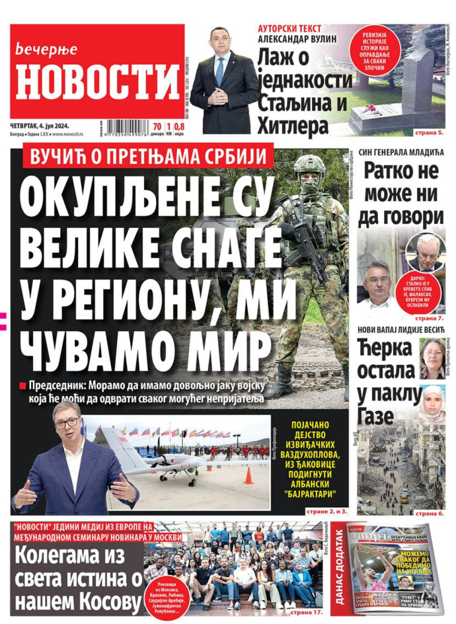 Dnevne novine u Srbiji za četvrtak, 4. jul 2024. godine, na naslovnim stranama najavljuju brojne aktuelne društveno-političke teme i donose ekskluzivne priče.