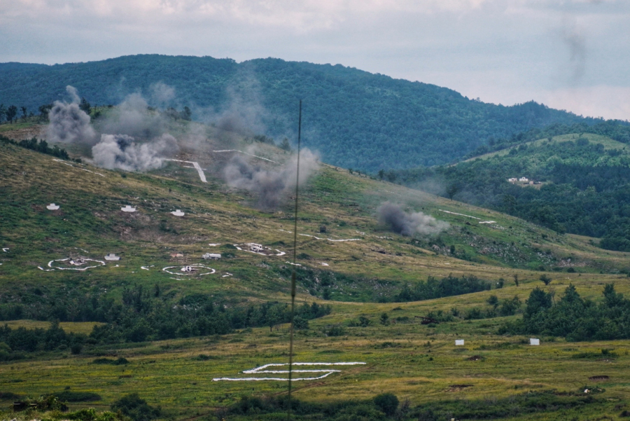 "Prvi put smo mogli da vidimo dejstvovanje Komarca 2, SM1, prvi put smo mogli da vidimo izbacivanje ovih 12 mina BD2 ako se ne varam, dakle mogli smo da vidimo i donošenje municije besposadnog Malog Miloša i dejstvo ne samo mitraljesko Malog Miloša već i raketnog bacača koje je bilo izuzetno precizno. Mogli smo da vidimo izuzetne pogotke Pasarsa, Korneta, korišćenje i raketa iz Pasarsa ali naravno i topova 40 mm.Izuzetno i dejstvo Orlova i helikoptera i svega drugog što smo danas mogli da vidimo od naših snajperista i specijalaca koji su sa velikim Milošima završavali posao.", rekao je Vučić.