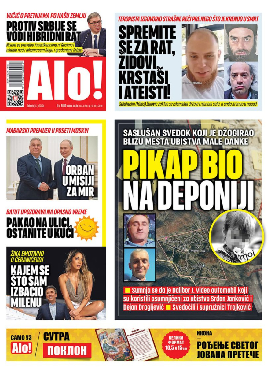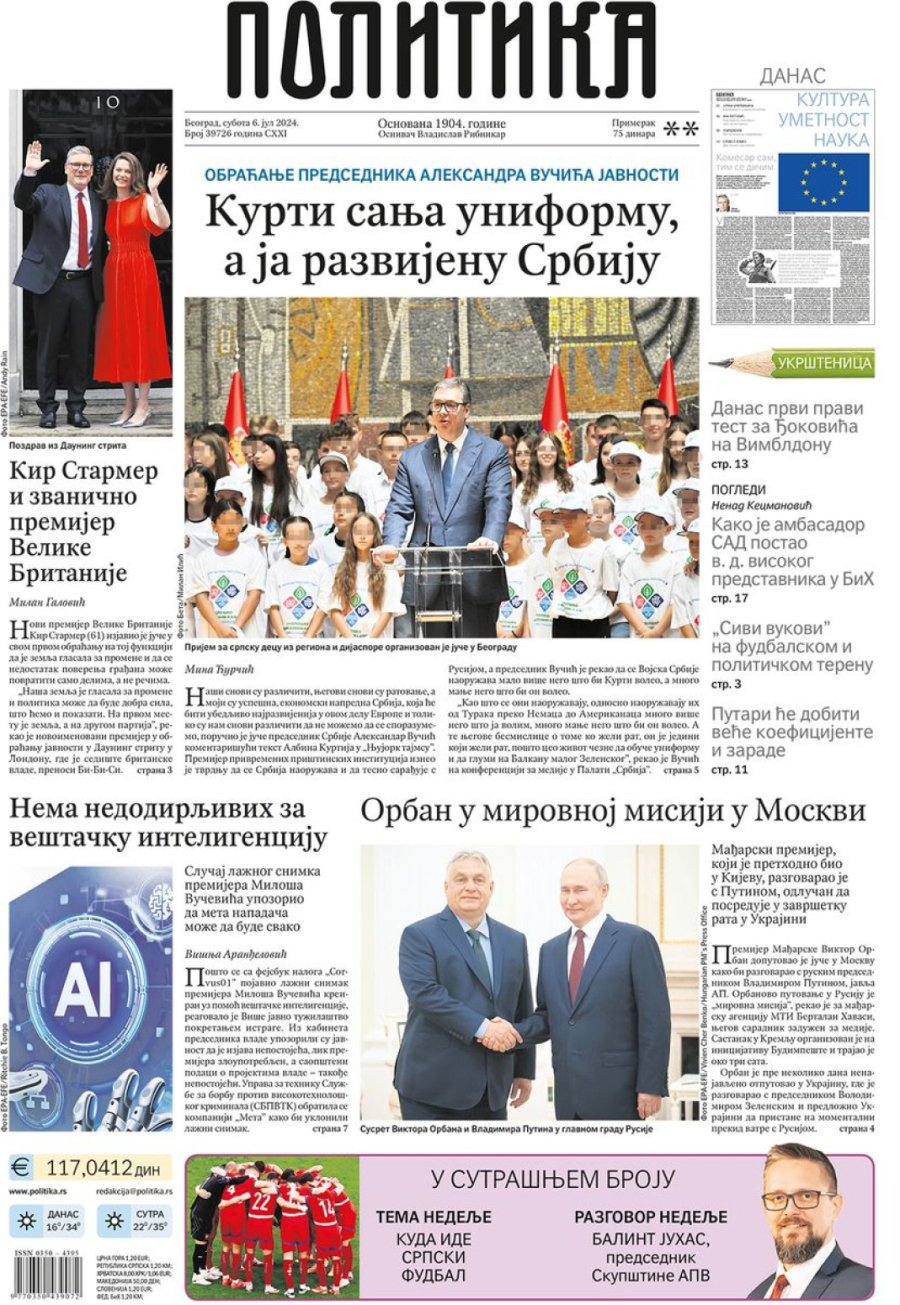 Dnevne novine u Srbiji za subotu, 6. jul 2024. godine, na naslovnim stranama najavljuju brojne aktuelne društveno-političke teme i donose ekskluzivne priče.