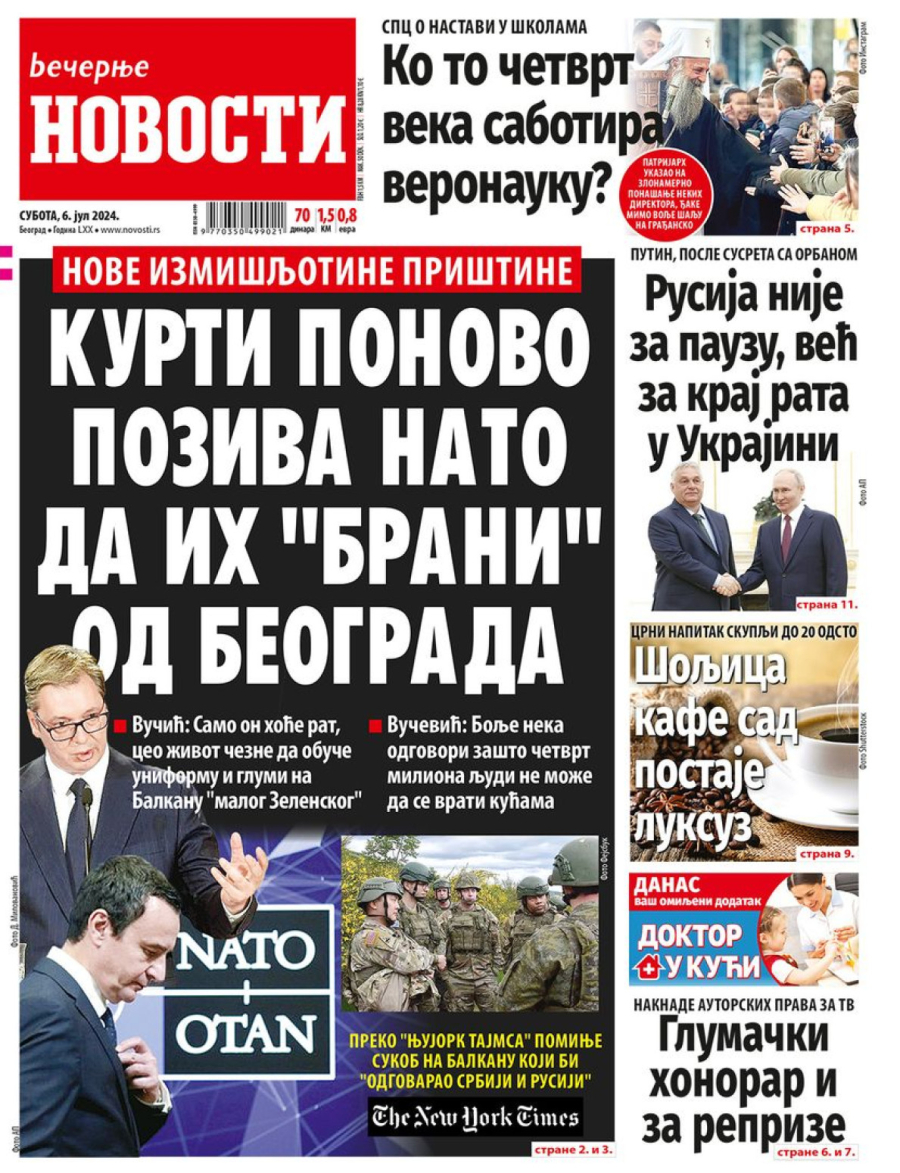 Novine: "Kurti sanja uniformu, a ja razvijenu Srbiju"; "Rusija nije za pauzu, već za kraj rata u Ukrajini"