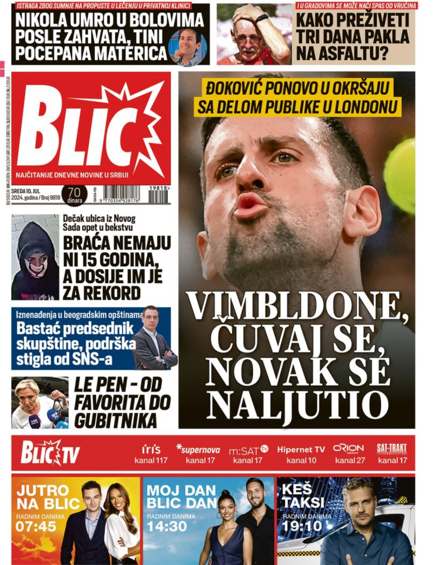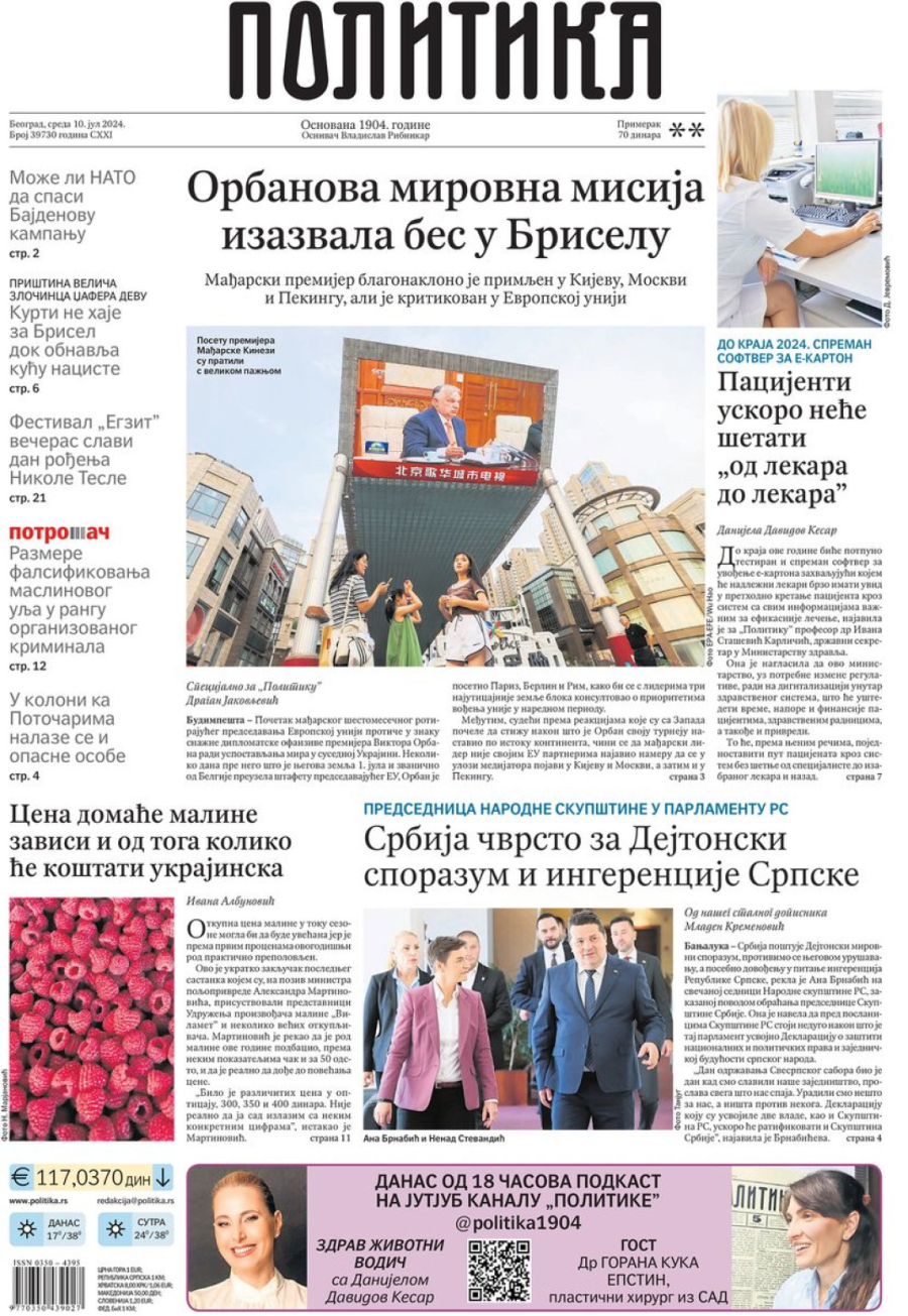 Dnevne novine u Srbiji za sredu, 10. jul 2024. godine, na naslovnim stranama najavljuju brojne aktuelne društveno-političke teme i donose ekskluzivne priče.