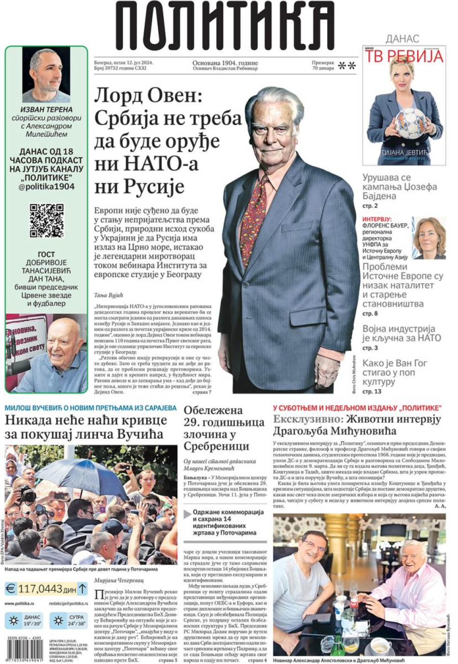 Dnevne novine u Srbiji za petak, 5. jul 2024. godine, na naslovnim stranama najavljuju brojne aktuelne društveno-političke teme i donose ekskluzivne priče.