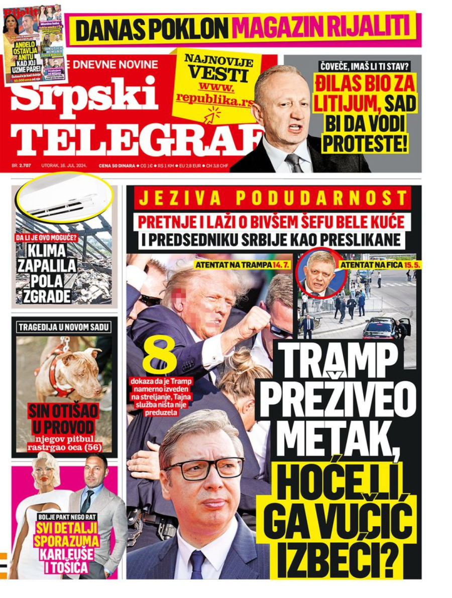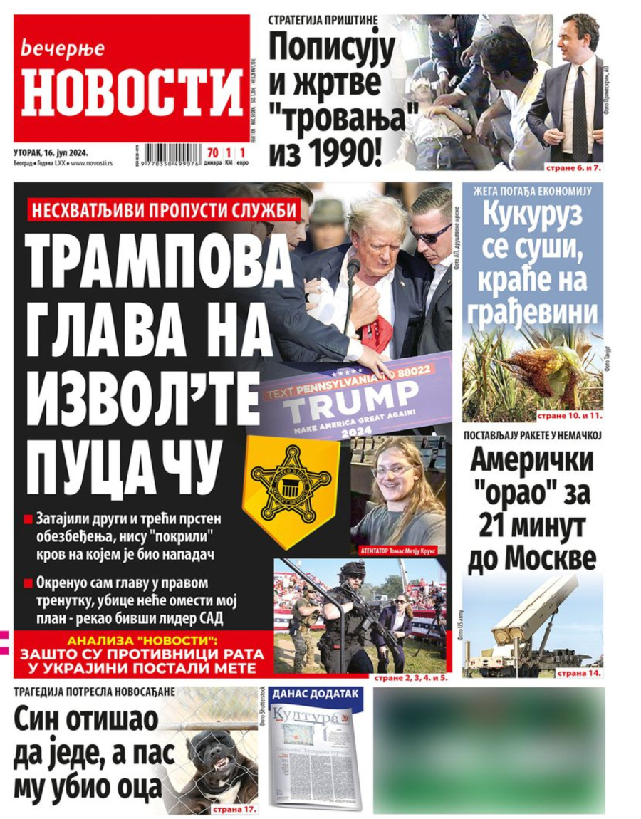 Dnevne novine u Srbiji za utorak, 16. jul 2024. godine, na naslovnim stranama najavljuju brojne aktuelne društveno-političke teme i donose ekskluzivne priče.