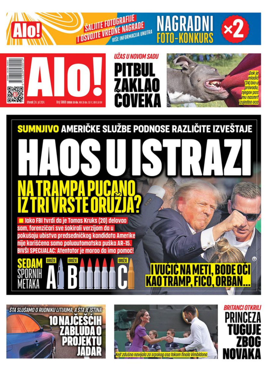 Novine: "Haos u istrazi"; "Trampova glava na izvol'te pucaču"
