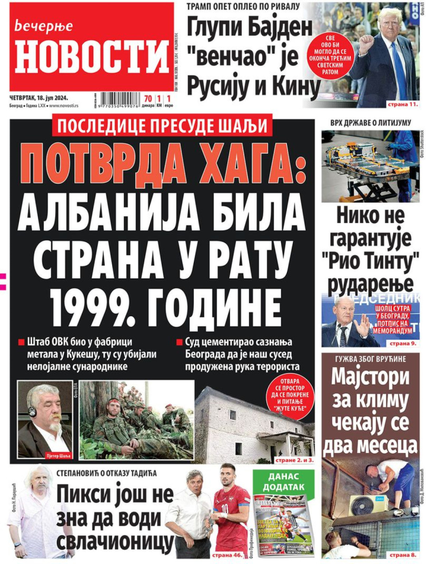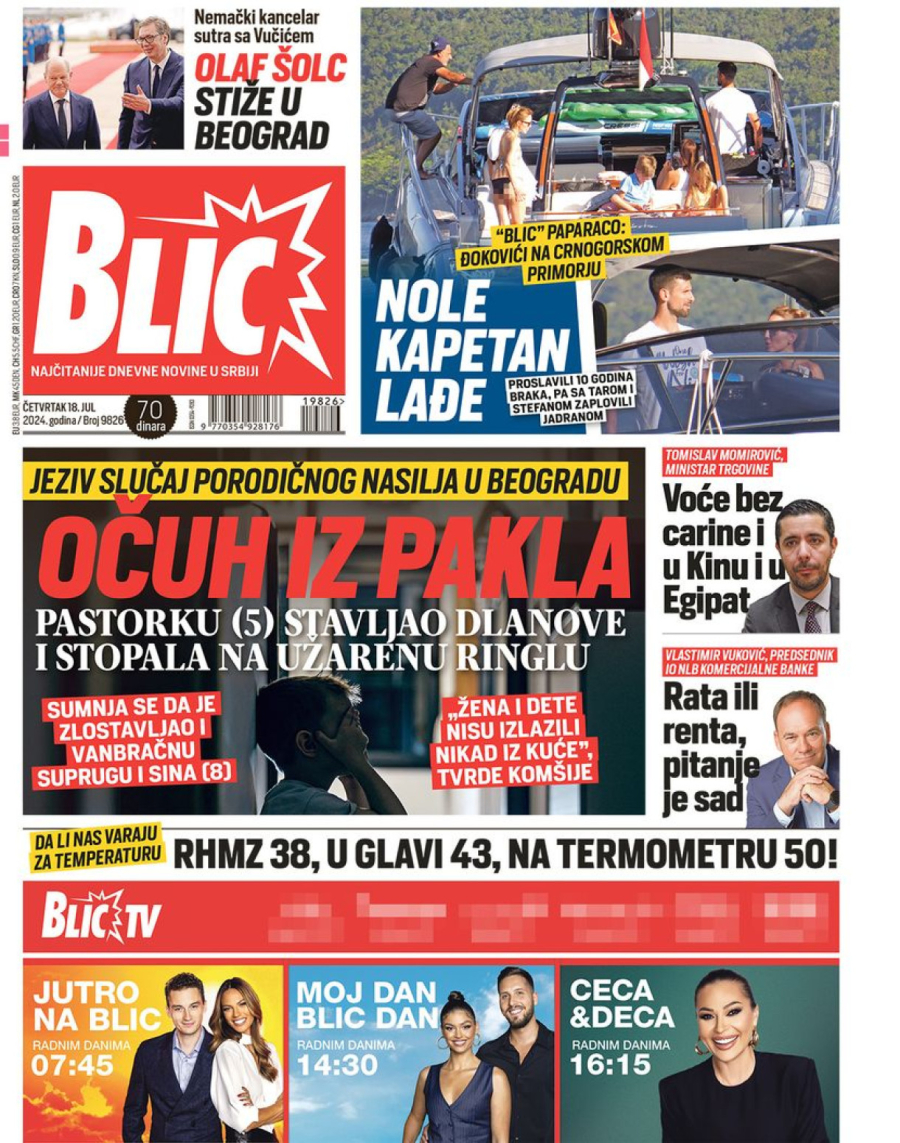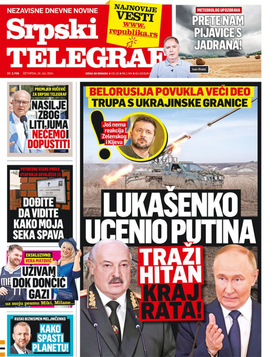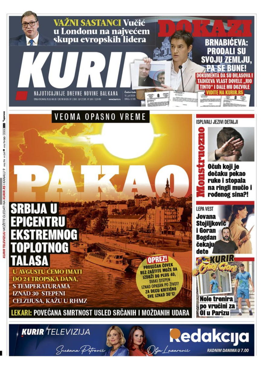 Dnevne novine u Srbiji za četvrtak, 18. jul 2024. godine, na naslovnim stranama najavljuju brojne aktuelne društveno-političke teme i donose ekskluzivne priče.