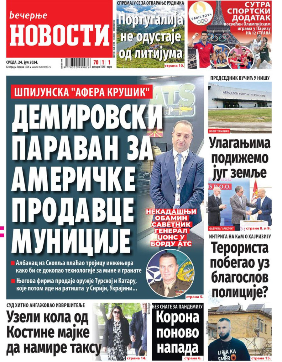 Novine: "Demirovski paravan za američke prodavce municije", "Niš će biti veliki logistički centar"